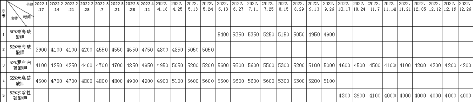 2022年南宁市场硫酸钾价格变化波动图表